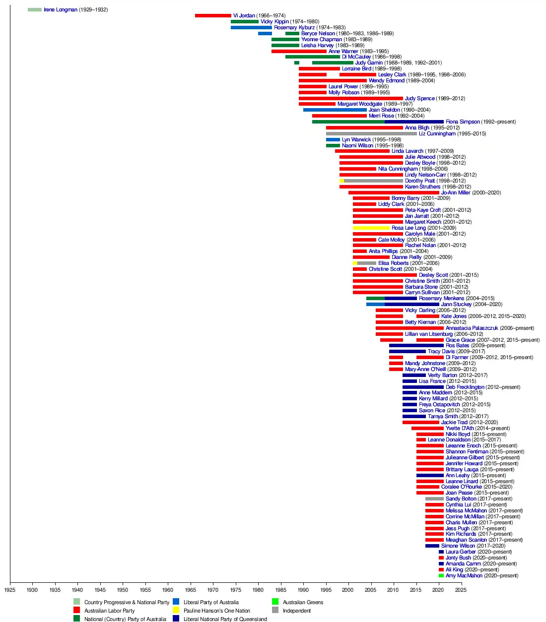 - 1 2 "Women in the Queensland Parliament, 1860–present" (PDF). Queensland Parliament. July 2015. Archived (PDF) from the original on 30 March 2016. Retrieved 17 April 2016.