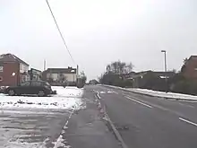 Wood End lies close to junction 10 of the M42, and is 2 miles from the A5 (Watling Street) at Dordon. The village has 4 bus stops along Tamworth Road, which are served by buses running on routes 777, 767, 115, 118 and 119.[35] The nearest railway station is Wilnecote.[36] The nearest airports are Birmingham (17 miles) and East Midlands (25 miles).[37]