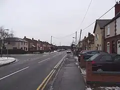 The village is part of the Kingsbury civil parish.[8] When the village was built in 1890 it was part of the Tamworth Rural Sanitary District. In 1894, under the Local Government Act 1894, it became part of the newly formed Tamworth Rural District. In 1965 the Tamworth Rural District was abolished and Wood End became part of the Atherstone Rural District. In 1974 under the Local Government Act 1972 the Atherstone Rural District became part of the newly formed district of North Warwickshire. Wood End is part of the Hurley and Wood End Ward, which is represented (2011) by Ann Lewis and Hayden Philips, both Labour.[9] As the ward is an old mining community it is considered a Labour safe seat. Wood End is covered by the Kingsbury Ward in Warwickshire County Council and is represented by the Labour Brian Moss.[10] It is part of the North Warwickshire parliamentary constituency and the current MP is Conservative Craig Tracey. Prior to Brexit in 2020 it was part of the West Midlands in the European Parliament.