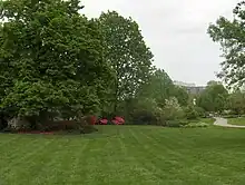 A woodland garden is a garden or section of a garden that includes large trees and is laid out so as to appear as more or less natural woodland, though it is often actually an artificial creation. Typically it includes plantings of flowering shrubs and other garden plants, especially near the paths through it.
