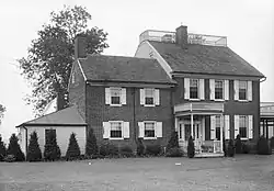 Two sheds attached to the eastern wing are old but cannot be dated. Granite hitching posts and a mounting block stand near the entrance. The inside of the building presents contrast between its 18th- and 19th-century sections. The older section has rough-finished walls and low ceiling. The newer section is more refined, indicating not only the passage of one hundred years, but also the increased fortunes of the owners. On the lower floor of the 1743 wing is located the kitchen/parlor of the original building. A winding staircase leads to the floor above, and there is a root cellar underneath. A Dutch oven with original hardware and wrought iron door can be found in the fireplace of this room. The hardware in both sections is original. On the westerly side of the main floor in the newer section can be found large nine-over-nine windows. These rooms are distinctive for their imported marble fireplaces and original wood trim and hardware. The larger section features a side-hall, double-pile plan. The classic stairwell and broad passageways add to the spacious feeling of the interior. The second floor also contains handsome fireplaces, but made with wooden mantels. The one-half story above the newer section also contains two rooms which are notable for their inside shutters. Behind a doorway in the hall is a stairway leading to the second attic and the "widow's walk."