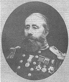 He was involved with developing cable laying techniques and carried out extensive survey work for the French and British allied forces during the Crimean War. For his services he was promoted captain in 1855 and awarded the C.B. and the distinction of officer, 4th. class, Legion d'honneur by Napoleon III.[7] He also received the Baltic, Crimean and Turkish medals and the Alma clasp. He carried out extensive survey work connected with improving the defences of the island of Malta. 1863 saw the end of his service afloat, due to his recurring malaria. He rose to rear-admiral by 1872 and vice-admiral in 1878. He died in 1888 at his home in Clare Lodge, Ephrain Road, Tunbridge Wells. His name continues in the form of several books dedicated to him and two extinct species named in his honour.