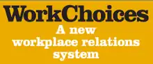 "WorkChoices: A new workplace relations system": WorkChoices logo from the Federal Government's advertising campaign.