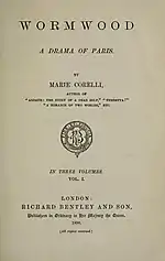 - ↑ Corelli, Marie (1890). Wormwood: A Drama of Paris. Richard Bentley and Son.