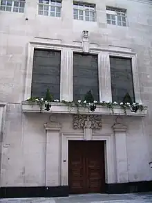The Mercers' Company is based at Mercers' Hall, 6 Frederick's Place in the City of London. The city block upon which it stands contains the archaeology of a Roman-British temple known today as Gresham Temple.[2]