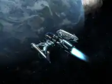 X3 uses a new, specifically developed graphics engine to give highly detailed renders of ships and stations, along with photo-realistic planets and a host of new effects, including lighting, shadow and reflection.[2] Graphically, Egosoft redesigned everything from scratch.[3] The stations are restructured, larger and more detailed. Few contain the internal docking ports of the prior games, instead featuring external docking clamps. Ship sizes have been redesigned according to a logical scale. Egosoft ensured a pilot would actually fit in their cockpit, and that a carrier vessel was actually large enough to carry a given number of ships. As such, ships and stations are noticeably different in size from prior games.[3]