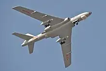 The Xi'an H-6 (Chinese: 轰-6; pinyin: Hōng-6)[lower-alpha 1] is a twin-engine jet bomber of the Chinese People's Liberation Army Air Force (PLAAF). The H-6 is a license-built version of the Soviet Tupolev Tu-16 and remains the primary bomber aircraft of the People's Republic of China.