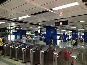 Xiao-gang station (simplified Chinese: 萧岗站; traditional Chinese: 蕭崗站; Jyutping: siu1 gong1 zaam6; Cantonese Yale: Sīugōng Jaahm), known as Jiangxia station [1] during planning, is a metro station on Line 2 of the Guangzhou Metro. It is located underground to the south of Huangshi Road East (黄石东路), the east of Yuncheng Road West (云城西路) and the south of Xiaogang River (萧岗涌), in the Baiyun District of Guangzhou.[2] It started operation on 25 September 2010.
