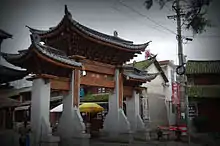 Xizhou (Chinese: 喜洲) is a town located 20 km (12 mi) north of Dali Old Town in Dali City, part of the Dali Bai Autonomous Prefecture in northwestern Yunnan, China. The town consists of 13 small villages with a combined population estimated at 54,779,[1] mostly consisting of Bai people with a small population of Hui and Han residents. Xizhou is located about 1 km (0.62 mi) from the shores of Erhai Lake to the east, and 2 km (1.2 mi) to the Cang Mountain to the west. Xizhou has been historically important as a trading post along the Tea Horse Road, it was once home to a landing strip and radio station for the Flying Tigers during WWII, has been home to notable rulers and governors of local polities past and present, and has gained notoriety in modernity for its high concentration of preserved and restored traditional Bai architecture and protected heritage sites.