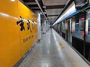 Xuanwumen station (simplified Chinese: 玄武门站; traditional Chinese: 玄武門站; pinyin: Xuánwǔmén Zhàn) is a station of Line 1 of the Nanjing Metro.[1][2] It started operations on 3 September 2005[3] as part of the line's Phase I from Maigaoqiao to Andemen.[lower-alpha 1]