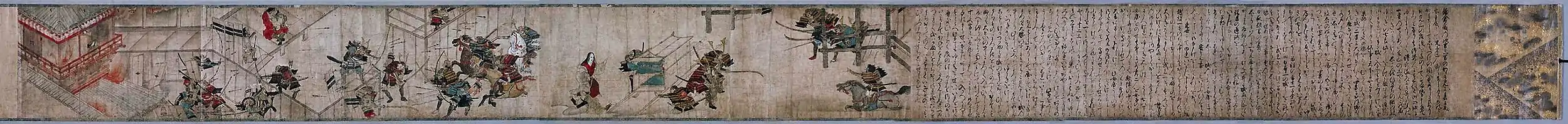 The Yūki Kassen Ekotoba (結城合戦絵詞) is a 15th-century scroll containing both text and illustrations describing Ashikaga Mochiuji's seppuku and Yūki Ujitomo's rebellion against shōgun Ashikaga Yoshinori (the Yūki War). It is 28.80 cm long, 378.20 cm wide. The scroll is an Important Cultural Property.