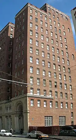 The YMCA Hotel is a historic building in the Tenderloin District of San Francisco, California, United States. It is listed on the listed on the National Register of Historic Places in San Francisco, California since 1986; and it is a contributing property to the National Register of Historic Places's Uptown Tenderloin Historic District since 2009.[2]