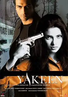 Yakeen (Translation: Trust) is a 2005 Indian Hindi language romantic mystery thriller film directed by Girish Dhamija, starring Arjun Rampal, Priyanka Chopra in the lead roles while Kim Sharma, Sudhanshu Pandey and Saurabh Shukla are featured in supporting roles. The film's screenplay was written by Vikram Bhatt.[1] The film's plot is loosely inspired by the 1991 Hollywood film Shattered[2].[3].The film's premise centres on a man who recovers from an accident with amnesia, and as he starts to piece together his former life he feels that something is wrong.[4]