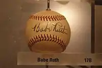 The New York Yankees Museum, located on the lower level at Gate 6, displays a wide range of Yankees' memorabilia.[56] A "Ball Wall" features hundreds of balls autographed by past and present Yankees, and there are plans to eventually add autographs for every living player who has played for the Yankees.[56] The centerpiece of the museum is a tribute to Don Larsen's perfect game in the 1956 World Series, with a commemorative home plate in the floor and statues of Larsen pitching to Yogi Berra.[56] Along with a facsimile of a current locker from the Yankees' clubhouse, fans can view the locker of the late Thurman Munson, which sat unoccupied in the previous stadium's Yankee clubhouse in honor of Munson.[56]