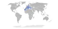 The breeding range is centred on the Mediterranean Sea. In North Africa, it is common in Morocco, Algeria and Tunisia and increasing in places. Recent breeding has occurred in Libya and Egypt. In the Middle East, a few breed in Israel, Palestine and Syria with larger numbers in Cyprus and Turkey. In Europe, there are colonies all along the Mediterranean coast, and also on the Atlantic islands and coasts north to Brittany and west to the Azores. It also breeds on the western side of the Black Sea; here it overlaps with the Caspian gull but there is a difference in habitat, with the yellow-legged gull preferring sea cliffs and the Caspian gull flatter shores. In recent decades birds have spread north into central and western Europe. One to four pairs have attempted to breed in southern England since 1995 (sometimes hybrid pairs with lesser black-backed gulls), though colonisation has been very slow.[8]