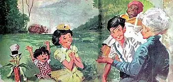 Sítio do Picapau Amarelo (literally translated and roughly known as "The Yellow Woodpecker Farm'" or "The Yellow Woodpecker Ranch") is a series of 23 fantasy novels written by Brazilian author Monteiro Lobato[1] between 1920 and 1940. The series is considered representative of Brazilian children's literature and as the Brazilian equivalent to children's classics such as C. S. Lewis, The Chronicles of Narnia and L. Frank Baum's The Wonderful Wizard of Oz series. Lobato's single original adult fiction, a sci-fi novel entitled O Presidente Negro ("The Black President") set in the far future, would not achieve the same popularity of Sítio.[2] The concept was introduced in Monteiro Lobato's 1920 novel A Menina do Narizinho Arrebitado, and was later republished as the first chapter of Reinações de Narizinho, which is the first novel of the actual Sítio series. The main setting is Sítio do Picapau Amarelo, where a boy, a girl and their living and thinking toys enjoy exploring adventures in fantasy, discovery and learning. On several occasions, they leave the ranch to explore other worlds such as Neverland, the mythological Ancient Greece, an underwater world known as the Clear Waters Kingdom, and outer space. Sítio is often symbolized by the character of Emília, Lobato's most famous creation alongside Jeca Tatu.