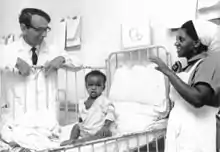 Yngve Larsson was the fifth child of Stockholm vice mayor Yngve Larsson and Elin Larsson (daughter of publisher Karl Otto Bonnier). He graduated from Uppsala University in 1938 and gained his Ph.D. at Karolinska Institute in 1956. From 1964 he worked for Swedish International Development Cooperation Agency in Addis Abeba, Ethiopia, first as a professor and 1965-1970 as director of the Ethio-Swedish Pediatric Clinic (ESPC) at Haile Selassie I University. In parallel, his wife pediatrician Ulla Larsson established the Lideta Maternal and Child Health Center (or Lideta MCH Clinic) nearby with financing from the Swedish branch of Save the Children. In the 1970s Yngve Larsson worked in Linköping, Sweden, in charge of diabetology at Linköping University and initiating national research in the field.