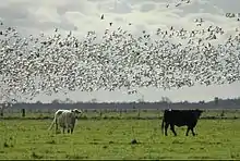 Snow geese descend upon irrigated pasture on the Tule Ranch