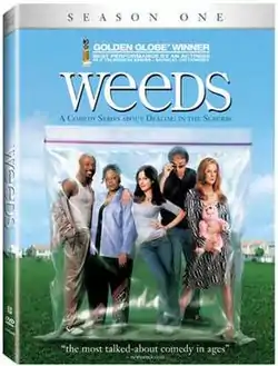 The first season of Weeds, an American dark comedy-drama television series created by Jenji Kohan, premiered on August 8, 2005, on the premium cable network Showtime. The principal cast consisted of Mary-Louise Parker, Elizabeth Perkins, Tonye Patano, Romany Malco, Justin Kirk, Hunter Parrish, Alexander Gould, and Kevin Nealon. The season had ten episodes, and its initial airing concluded on October 10, 2005. Season one focuses on Nancy Botwin (Parker), a single mother living in the suburban town of Agrestic, who begins dealing marijuana in an effort to maintain her family's upper middle class lifestyle following the death of her husband.