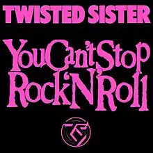 "You Can't Stop Rock 'n' Roll" is a song by American heavy metal band Twisted Sister, released in 1983 as the third and final single from their second studio album, You Can't Stop Rock 'n' Roll. The song was written by Dee Snider and produced by Stuart Epps. "You Can't Stop Rock 'n' Roll" reached number 43 in the UK Singles Chart and remained in the top 75 for four weeks.[2]