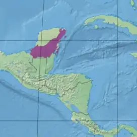 It is found in the Yucatán Peninsula in southern Mexico, northern Guatemala, and northern Belize.[1]