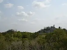 In 695 Calakmul suffered a military defeat at the hands of Tikal and it was believed that the king was killed or captured in that battle. A stucco scene at Tikal shows a prisoner being "adorned" for sacrifice and names the Kaan king in a related caption; the text is damaged and in its current condition it allowed for the possibility that it referred to Yichʼaak Kʼahkʼ himself instead of him being the overlord of the prisoner to be killed. A new find at La Corona has revealed that the king survived at least until 696, when he made a visit to that town.[1] There are reasons to believe that Yichʼaak Kʼahkʼ is buried in Tomb 4 within Calakmul's Structure 2.