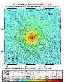 - 1 2 3 "Magnitude 6.9 – SOUTHERN QINGHAI, CHINA 2010". USGS. April 14, 2010. Archived from the original on 15 April 2010. Retrieved 14 April 2010.