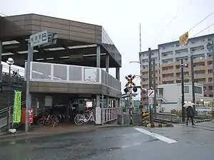 The station consists of two side platforms serving two tracks. The original configuration had been an island platform serving two tracks but in late 2016, another side platform had been built on the other side of track 1 and platform 1 was moved across. The former platform 1 on the island was fenced off, leaving platform 2 using the former island as a side platform. The station building is a two-storey structure. The whole of the top level and part of the bottom level serves as designated parking areas for bicycles. A small waiting room and a staffed ticket window is located on the lower level. Platform 1 is directly access from the station building while platform 2 is access by means of a level crossing.[2][3][4]