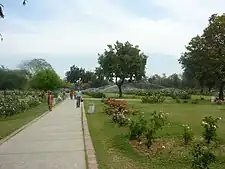 Zakir Hussain Rose Garden, is a botanical garden in Chandigarh, India and spread over 30 acres (120,000 m2) of land,[1] with 50,000 rose-bushes of 1600 different species.[2] Named after India's former president, Zakir Husain and created in 1967 under the guidance of Mohinder Singh Randhawa, Chandigarh's first chief commissioner, the garden has the distinction of being Asia's largest.[2] The garden has not only roses, but also trees of medicinal value. Some of the medicinal plants that can be spotted here are bel, bahera, harar, camphor and yellow gulmohar. The rose plants have been planted in carved-out lawns and flower beds.