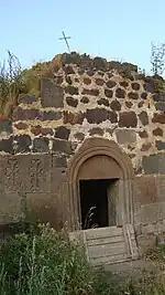 Historical heritage sites in and around the village include medieval tombstones, khachkars from between the 12th and 17th centuries, a 12th/13th-century castle and chapel, the church of Surb Grigor (Armenian: Սուրբ Գրիգոր, lit. 'St. Gregory') consecrated in 1274, the church of Surb Sargis (Armenian: Սուրբ Սարգիս, lit. 'St. Sargis') consecrated in 1279, a 13th-century bridge, and the 17th-century church of Surb Astvatsatsin (Armenian: Սուրբ Աստվածածին, lit. 'Holy Mother of God').[1] Two of the four churches of Tsar of as well as two nearby monasteries have been destroyed. Armenian churches, monasteries and cemeteries in the village started to be destroyed by Kurds at the end of the 19th century, and the destruction continued on a larger scale during the Soviet period, especially during the 1940s and 1950s.
