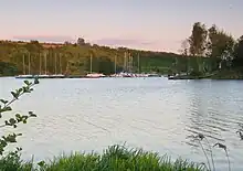 The Zarzeczewo Marina - a sailing port in Włocławek on the right bank of the Vistula River (Włocławek Reservoir; km 672.50),[1] located in the Zawiśle district, in the Zarzeczewo neighbourhood, near the village of Zarzeczewo. The Chełmiczka River and the Święty Strumień stream escape into a small bay where the marina is located.[2] Before the water damming, a kilometre long clump of bushes stretched on the Vistula River at the height of Zarzeczewo.[3] The bay in its present shape was created by the construction of the dam in Włocławek and the creation of the largest artificial lake in Poland.