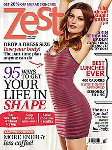 Zest started life as banded-on supplement with Cosmopolitan in Autumn 1994[2] and launched as a monthly magazine in April 1996. Previous editors include Vanessa Raphaely and Eve Cameron and the current editor is Mandie Gower. Zest was guest edited by celebrity figure Elizabeth Hurley in June 2010.[3] Hurley then went on to appear on the cover of Zest magazine in January 2012.