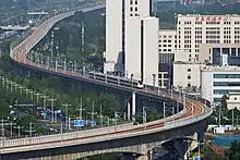 A CRH6A EMU on the railway near Zhengzhou East railway station