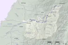 The Zhuoshui River, also spelled Choshui or Jhuoshuei River, (Chinese: 濁水溪; Hanyu Pinyin: Zhuóshuǐ Xī; Tongyong Pinyin: Jhuóshuěi Si; Wade–Giles: Cho2-shui3 Hsi1; Pe̍h-ōe-jī: Lô-chúi-khoe) is the longest river in Taiwan.[1] It flows from its source in Nantou County up to the western border of the county, subsequently forming the border between Yunlin County and Changhua County, with a total length of 203 km (126 mi).[2]