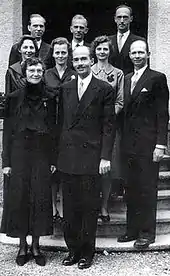 Empress Zita of Austria with her eight children. Standing in the back from left to right Archdukes Carl Ludwig, Rudolf and Robert, in the middle Archduchesses Adelheid, Elisabeth and Charlotte with Archduke Felix, in the forefront Empress Zita and Archduke Otto, 1962
