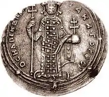 Zoë and Michael were married on the same day that Romanos III died.[6] The next day they summoned the Patriarch Alexios I to officiate at the coronation of the new emperor.[23] Although he initially refused to co-operate, the payment of 50 pounds of gold helped change his mind.[6] Zoë's new husband took power as Michael IV.[24][25] His abrupt rise to power had left him unprepared to rule, and he delegated much of the business of governing to his brother, the eunuch John the Orphanotrophos.[26]
