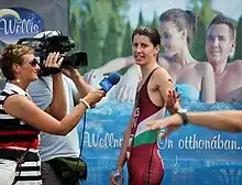 ![]() Zsófia Kovács as the best Hungarian female triathlete at the Tiszaújváros World Cup 2011. | |